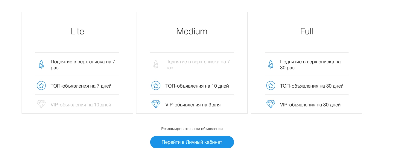 Для этого, находясь в Личном кабинете перейти в раздел Объявления, Активные. Нажать на кнопку Повысить. После чего вы окажетесь на странице заказа услуг.