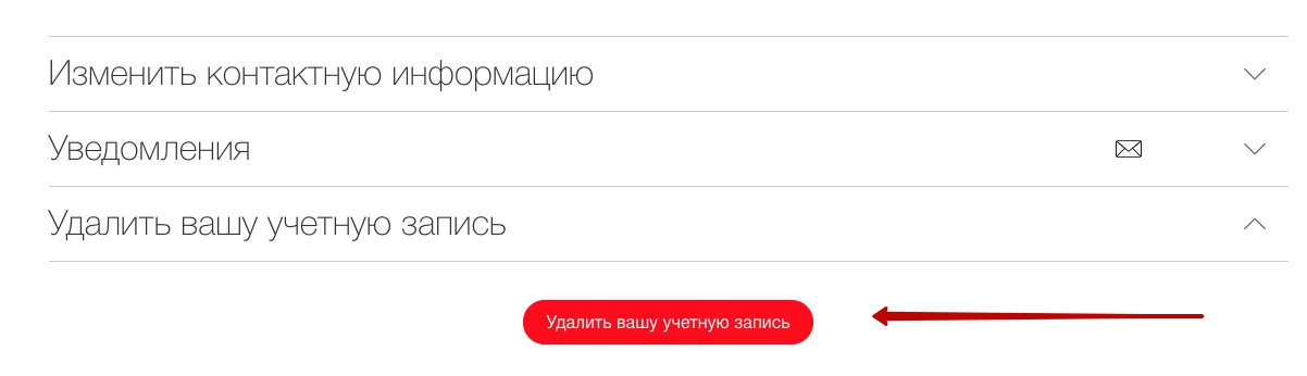 Чтобы удалить учетную запись: